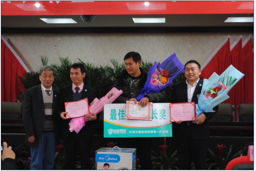 李興飛,對(duì)于前兩位獲獎(jiǎng)?wù)邅?lái)說(shuō),算一名新人。來(lái)公司不長(zhǎng),從飼料跨行到疫苗,最后落腳回盛,在合肥市場(chǎng),他要騎摩托車下豬場(chǎng),風(fēng)霜雨雪也是如此。小小的個(gè)子,撐起強(qiáng)有力的腰板,不怕苦不怕累,崎嶇的道路不是他的障礙,靠?jī)蓚€(gè)輪子的摩托摘奪2013年度銷售桂冠。