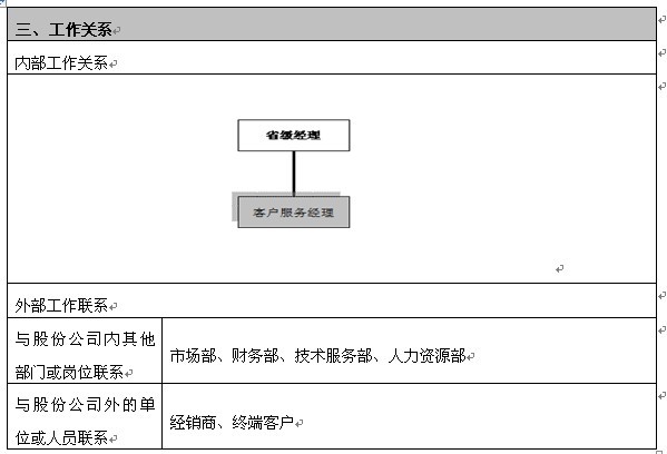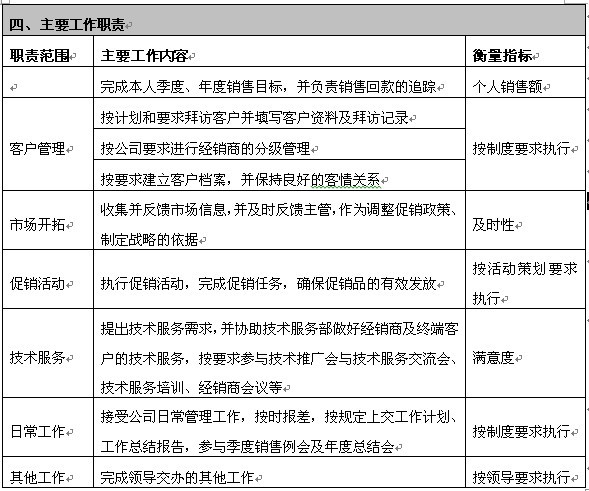 上述案例的結(jié)論是:崗位說明書的實際功能是讓銷售人員明白自己為了達成目標要做什么?公司內(nèi)部有哪些資源可以支持他達成目標?除此兩方面外的其它內(nèi)容,對于崗位操作人員都是無效的。因此,崗位說明書的格式及內(nèi)容,做到簡明有效就好。
