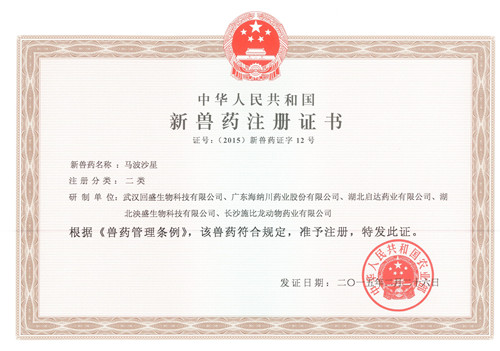 新獸藥注冊證書(馬波沙星)