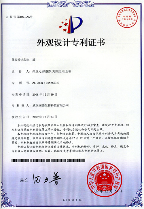 外觀設(shè)計專利證書(罐專利)